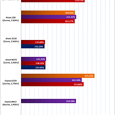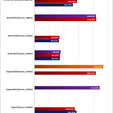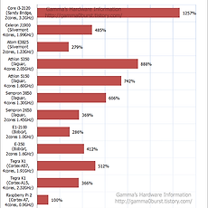 반응형 성능비교 그래프/ARM vs X86(X64)14 ARM vs X86(X64) 성능 비교.(Ubuntu) v15.12 - 1년 반 만입니다. - 추가 Tegra X1 - Cortex-A57 1.91GHz 쿼드코어 Raspberry Pi 2 - Cortex-A7 0.9GHz 쿼드코어 (Broadcom BCM2836) - 링크 http://www.phoronix.com/scan.php?page=article&item=nvidia-jtx1-perf&num=1 http://www.phoronix.com/scan.php?page=article&item=raspberry-pi-zero&num=2 https://openbenchmarking.org/result/1502103-KWAR-140722031 - 결과 개수가 너무 늘어나서 가독성이 떨어집니다. (나올지 모르겠지만) 다음 버전부터는 우분투 14 이상만 포함할 예정입니다. - .. 2015. 12. 21. ARM vs X86(X64) 성능 비교.(Ubuntu) v14.05 - 추가 Tegra K1 (32bit, Jetson K1) - Cortex-A15 Quad 2.32GHz Celeron J1900 - Silvermont Quad 1.99GHz Sempron 2650 - Jaguar Dual 1.45GHz Sempron 3850 - Jaguar Quad 1.30GHz Athlon 5150 - Jaguar Quad 1.60GHz Athlon 5350 - Jaguar Dual 2.05GHz - 링크 http://www.phoronix.com/scan.php?page=article&item=nvidia_tegrak1_preview&num=1 http://openbenchmarking.org/result/1405012-PL-1405010KH09 http://openbenchma.. 2014. 5. 5. ARM vs X86(X64) 성능 비교.(Ubuntu) v14.02 데이터가 너무 많아져서 우분투12는 뺐습니다. 데이터 근거가 되는 링크는 맨 아래에 있습니다. 늘 그렇듯 참고사항일뿐 절대적 기준은 아닙니다. 기본 클럭 성능입니다. 1.0GHz로 정규화한 동클럭 성능입니다. 실버몬트는 요나 정도 됩니다. 대략 실버몬트 싱글 = Cortex-A15 듀얼 입니다. 기존 아톰과 비교하면 동클럭 성능이 50% 정도 올랐습니다. AMD 밥캣 듀얼코어는 실버몬트, 요나보다 약간 앞서는 수준입니다. 데이터가 적어서 빠졌지만 AMD 재규어 듀얼코어는 177% 입니다. 성능 격차가 너무 많이나서 따로 빼서 정리했습니다. 동클럭성능입니다. 여러가지가 보입니다. 그렇게 신뢰가는 절대적 지표가 아니지만요. 샌디브릿지 -> 아이비브릿지가 +22%, 아이비브릿지 -> 하즈웰이 +25% 비쉐라는.. 2014. 2. 23. ARM vs X86(X64) 성능 비교.(Ubuntu) v13.11 우분투 13.10 이 추가되었습니다. 엑시노스5410 결과가 보강되었으며, 샌디브릿지가 추가되었습니다. i3-2120이 추가되었으니 데스크탑과의 성능 격차가 어느 정도 보일 것이라 생각합니다. 추가된 테스트 결과 링크가 26개나 되는 관계로 링크는 생략하겠습니다. 2013. 11. 4. ARM vs X86(X64) 성능 비교.(Ubuntu) v13.8 http://openbenchmarking.org/result/1307299-UT-1211119SU04 http://openbenchmarking.org/result/1307283-UT-1305102FO40 http://openbenchmarking.org/result/1307302-UT-1307299UT15 오랜만의 업데이트입니다. 엑시노스5410 결과 추가입니다. ODROID-XU가 나와서 찾아봤더니 테스트 결과가 있더군요. 엑시노스5410이 기존 아톰은 넘습니다. 요즘에 와서 무슨 의미가 있겠냐마는 요나까지도 잡습니다. 메롬이나 펜린에는 안 됩니다. 동클럭 성능으로보면 요나는 넘고 메롬, 펜린에 근접합니다. 엑시노스5250 대비 1.5배 수준인데 일반적으로 코어 수가 2배로 늘면 성능은 1.5배정도.. 2013. 8. 12. ARM vs X86(X64) 성능 비교.(Ubuntu) v13.5 http://www.phoronix.com/scan.php?page=article&item=ubuntu1304_apple_osx1083&num=1 http://www.phoronix.com/scan.php?page=article&item=ubuntu_1304_12042&num=1 http://www.phoronix.com/scan.php?page=article&item=llvm_clang33_t5600&num=1 http://www.phoronix.com/scan.php?page=article&item=ubuntu_x86_1304&num=1 Core2 Duo T5600 (Merom) 추가. 그래프 개선. - T5600은 T9300과 동클럭 성능이 비슷합니다. 공정 미세화와 그에 따른 클럭 상승 외에는 이.. 2013. 5. 5. ARM vs X86(X64) 성능 비교.(Ubuntu) v13.4 http://www.phoronix.com/scan.php?page=article&item=ubuntu_nexus_7&num=2 http://openbenchmarking.org/result/1303016-PTS-GCC48ARM14 이번부터 우분투11은 제외했습니다. Core2 Duo T9300 추가. Core i3-330M 추가. 그래프 개선. 2013. 4. 2. ARM vs X86 (Ubuntu) 성능 비교. v13.3 http://openbenchmarking.org/result/1212043-RA-COMPILERT89 http://www.phoronix.com/scan.php?page=news_item&px=MTI0NzA http://openbenchmarking.org/result/1212087-RA-TEGRACORT38 http://www.phoronix.com/scan.php?page=article&item=linaro_1212_linux&num=1 http://www.phoronix.com/scan.php?page=article&item=ubuntu_1304jan_atom&num=1 http://openbenchmarking.org/result/1302235-FO-EXYNOS5DU96 http://openbe.. 2013. 3. 2. ARM vs X86 (Ubuntu) 성능 비교. v13.2 http://www.phoronix.com/scan.php?page=article&item=llvm_gcc_a15&num=1 http://openbenchmarking.org/result/1212043-RA-COMPILERT89 http://www.phoronix.com/scan.php?page=news_item&px=MTI0NzA http://openbenchmarking.org/result/1212087-RA-TEGRACORT38 http://www.phoronix.com/scan.php?page=article&item=linaro_1212_linux&num=1 http://www.phoronix.com/scan.php?page=article&item=ubuntu_1304jan_atom&num=1 -.. 2013. 2. 1. ARM vs X86 (Ubuntu) 성능 비교. v12.12 우분투를 통한 ARM, X86 성능비교를 그동안 간헐적으로 다뤘는데, 이제는 정기적으로 다룰까합니다. 아마 한 달 간격이겠지만, 상황에 따라서는 2~3달 간격이 될지도 모르겠습니다. 1. 엑시노스 5250 결과 추가. Cortex-A15 쯤 되니 아톰과 1대1 대응이 가능해졌습니다. 2. 엑시노스 4412 는 동클럭에서 엑시노스 5250 과 비슷한 수준. 정수연산 성능 (DMIPS/MHz) 를 생각하면, 4412 가 앞서야하지만 4412 가 약간 낮은걸로 봐서, 부동소수점연산 성능, 메모리 성능 등이 종합적으로 반영된듯. 3. 테그라3 vs 엑시노스 4412 이론적으로는 동일 스펙인데, 테그라3 가 35% 정도 낮은 성능을 보입니다. 2배 가까운 메모리 성능차이, 4+1 코어 구조의 효율문제 정도가 짚이.. 2012. 12. 2. 이전 1 2 다음 반응형