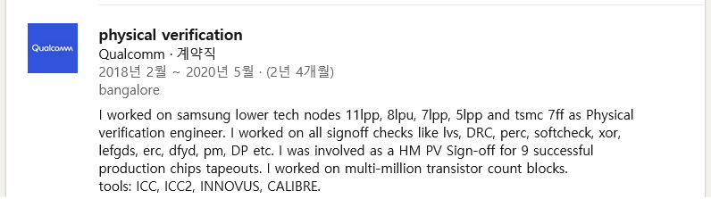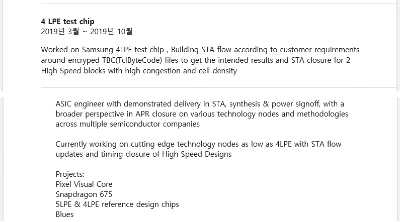 기존 이력에 구글, 퀄컴 제품 프로젝트가 있어서 삼성 4LPE 공정도 저 두 업체와 관련된 프로젝트가 아닐까 추측.