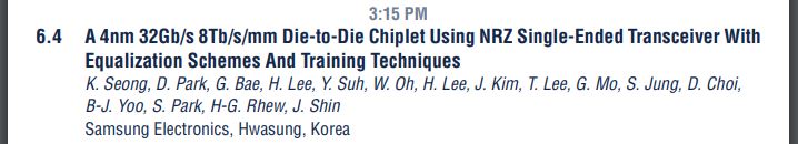 칩렛을 위한 i/o 인터페이스인듯한데 32Gb/s라는 속도, die-to-die chiplet 표기로 보아 DRAM과의 i/o로 보기는 어려움.