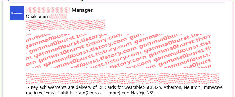 그리고 본인의 주요 성과로 언급할 정도면 규모나 유명세에서 메이저한 제품일 가능성이 높으니 최근 제품인 X65, X70 모뎀으로 추측 가능한데, LE라고 하는건 non LE가 있다는 것이고 파생형이 있는 X65로 보는게 타당함.