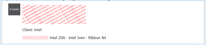 Intel 20A는 RibbonFET이 맞지만 Intel 5nm 공정이란건 공식적으로 없어서 Intel 20A와 다른 공정을 언급한다고 보기도 어려움.