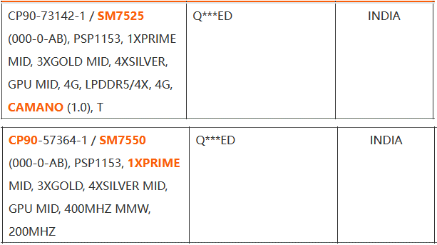 패키지 PSP1153, 코드네임 Camano, CPU 구성(1+3+4), TSMC 생산, 모두 SM7550(스냅7 gen3)과 일치함.