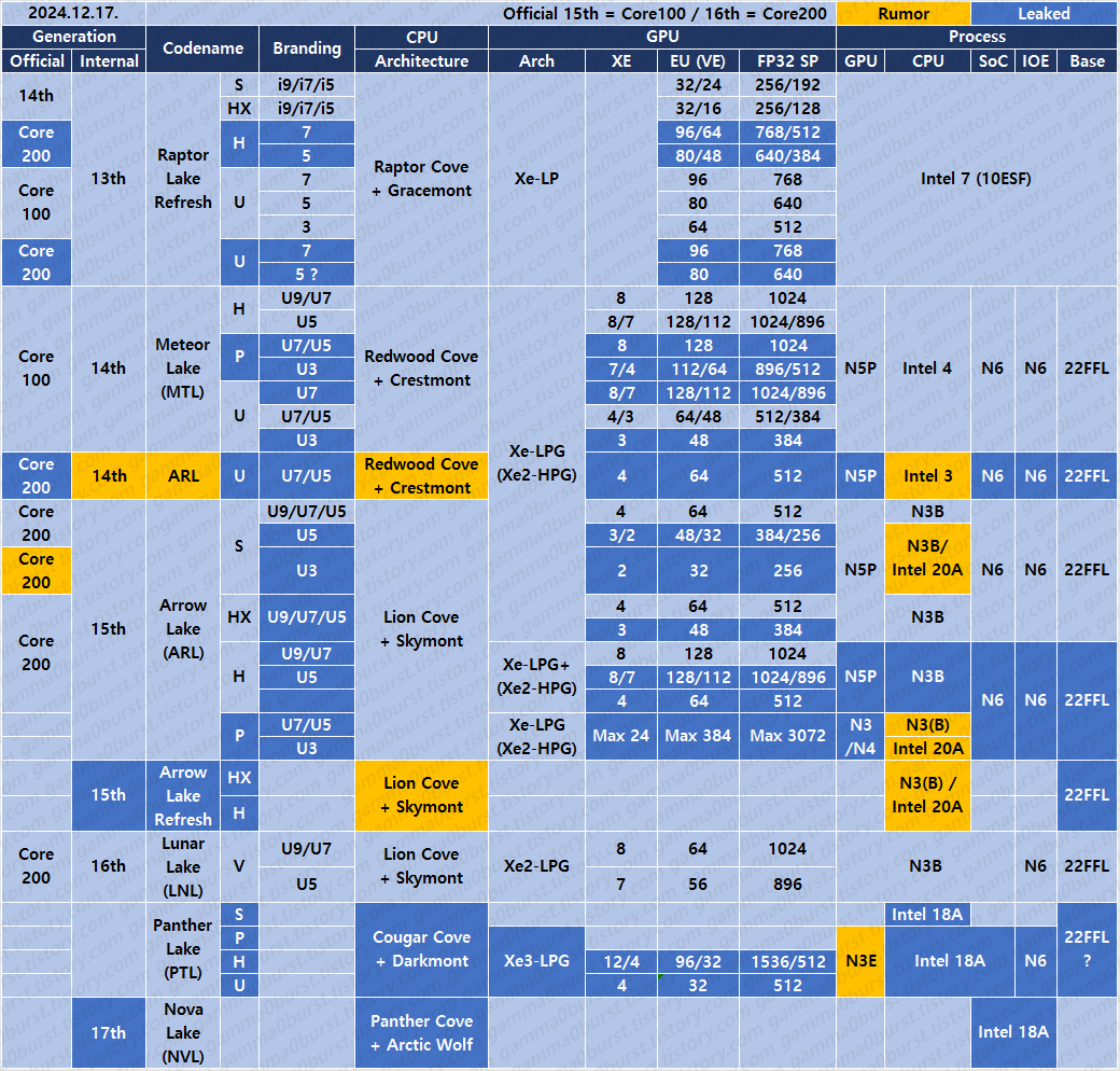 | 인텔 CPU 루머, 유출 정리. (2024.10.26. Raptor/Arrow/Panther Lake) (0) | 2024.10.26 |