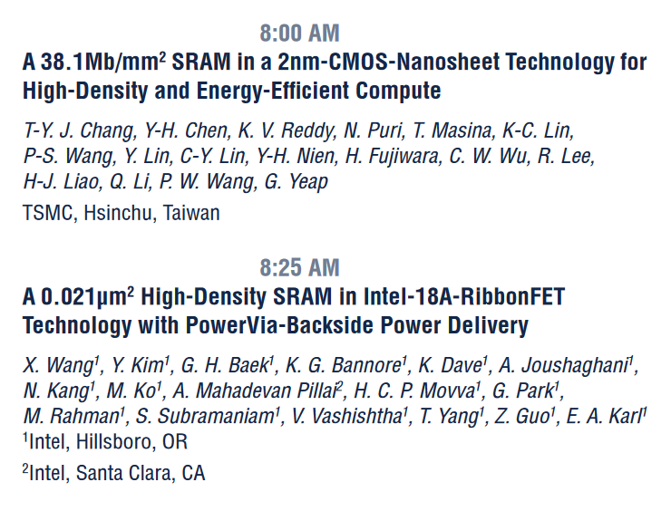 ISSCC 2025 프로그램을 보면 인텔 18A의 고밀도 SRAM 면적이 0.021um2 이고