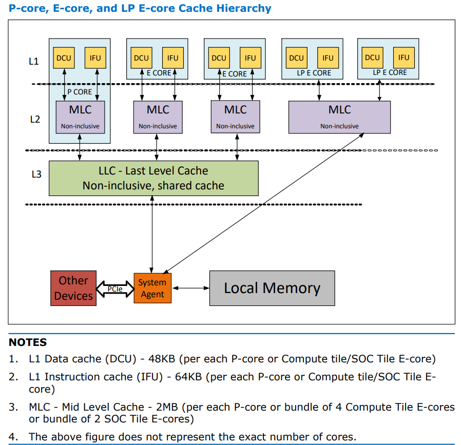 원본 소스를 제대로 확인을 못 해서 루머 수준으로 판단되는데 팬서레이크 LP-E 코어도 기존 제품처럼 P,E 코어와 LLC를 쉐어하지 않는다고 함.