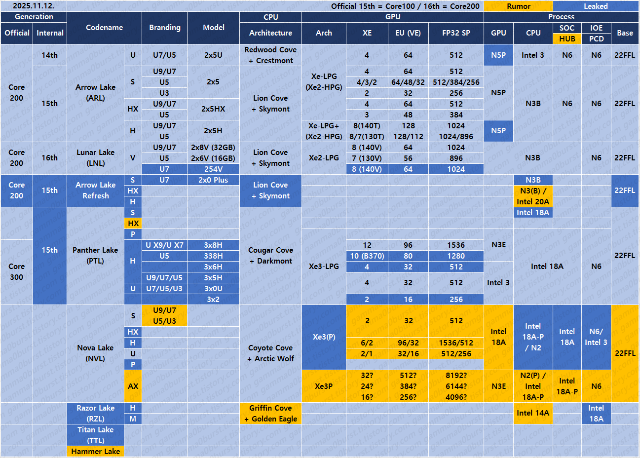 | 인텔 CPU 유출, 루머 정리. (2025.12.10. Arrow/Panther/Nova Lake) (0) | 2025.12.10 |