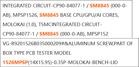 물류정보에서 SM8845, 코드네임 Molokai가 확인됨.