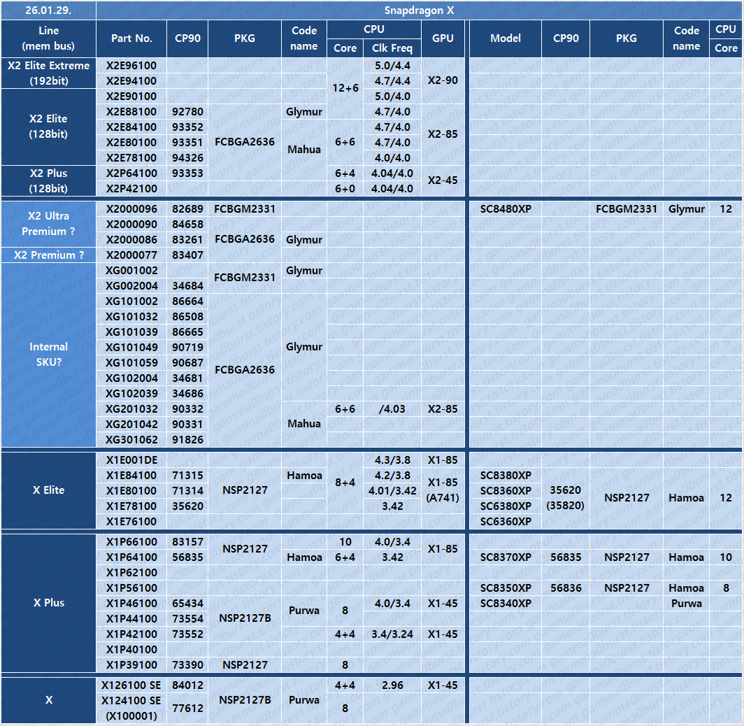 (퀄컴 스냅드래곤 유출 정보 정리. (2025.12.26.))