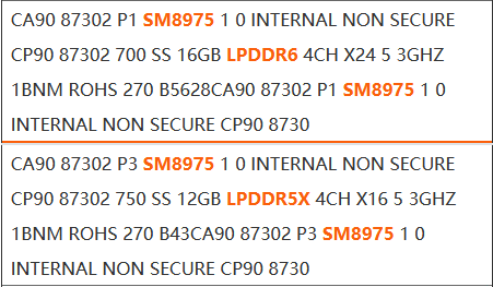 SM8975, LPDDR5X 12GB/LPDDR6 16GB, 램 10.7Gbps