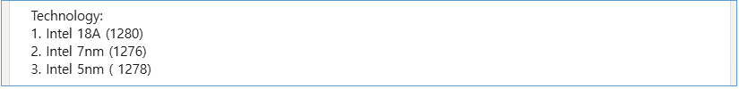위에서 나온대로 18A 공정을 내부에서 5nm로 보는 내용이 많은데 여기서는 3nm로 나온게 이상함.