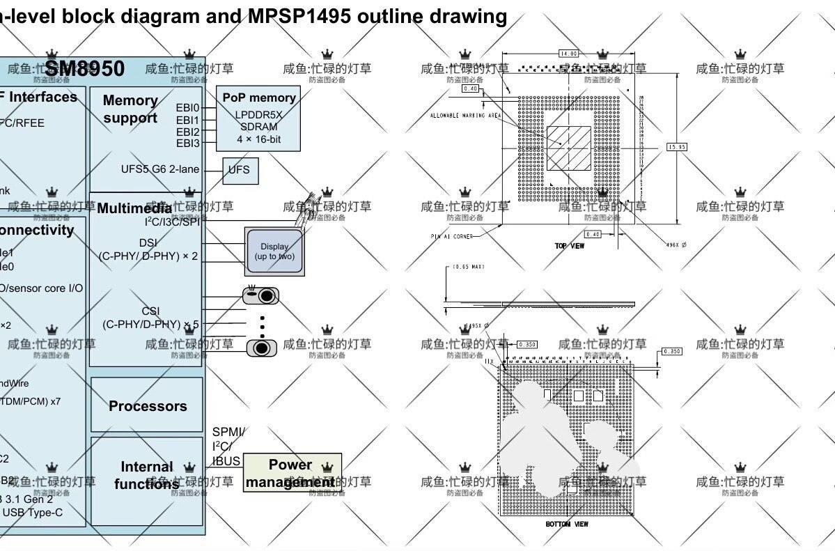 SM8950, 패키지 MPSP1495, LPDDR5X(496FBGA) 지원