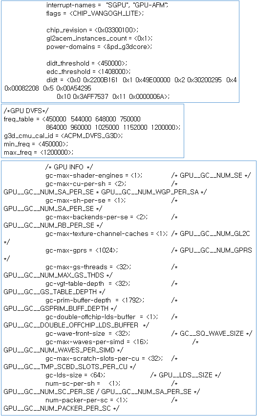 사양 Shader Engine 1개, Shader Array 2개, 2WGP, 4CU, 2 Backend