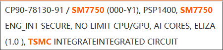 SM7750 / 패키지 PSP1400 / 코드네임 Eliza / TSMC 생산.