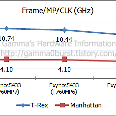 반응형 Mali-T760MP61 엑시노스5433 (Exynos5433) GFXBench 분석. (Mali-T760MP6, 갤럭시 노트4) - 시코에 엑시노스5433판 갤럭시 노트4 GFX벤치 결과가 올라왔습니다. 동의를 받지 않은지라 캡쳐는 안 올리고 그냥 결과만 텍스트로 얘기하겠습니다. 나중에 GFXBench 사이트에 결과가 올라오면 갱신을 하든지 할 예정. - 결과 맨해튼 오프스크린 (Manhattan offscreen) : 17.2 fps 맨해튼 온스크린 (Manhattan onscreen) : 10.5 fps 티렉스 오프스크린 (T-Rex offscreen) : 37.6 fps 티렉스 온스크린 (T-Rex onscreen) : 25.1 fps - Mali-T760의 클럭당성능 엑시노스5433에서 정확하게 알려진건 Mali-T760 이라는 것뿐. 저 결과로 사양을 추정하려면 참고자료가 필요합니다. 그 역할을 할 수 있는게 RK3288.. 2014. 9. 27. 이전 1 다음 반응형